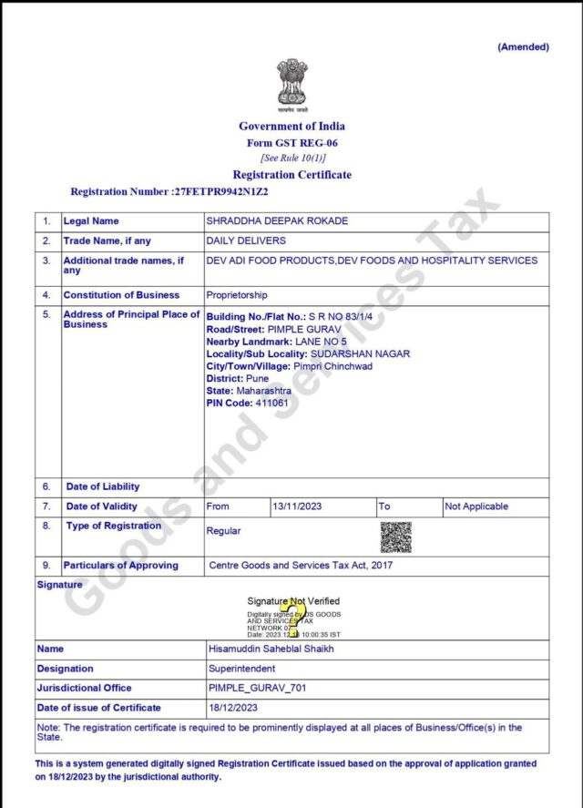 | Name | Ms. SHRADDHA DEEPAK ROKADE |