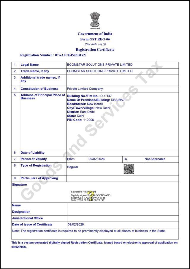 Company Name ECOMSTAR SOLUTIONS PRIVATE LIMITED