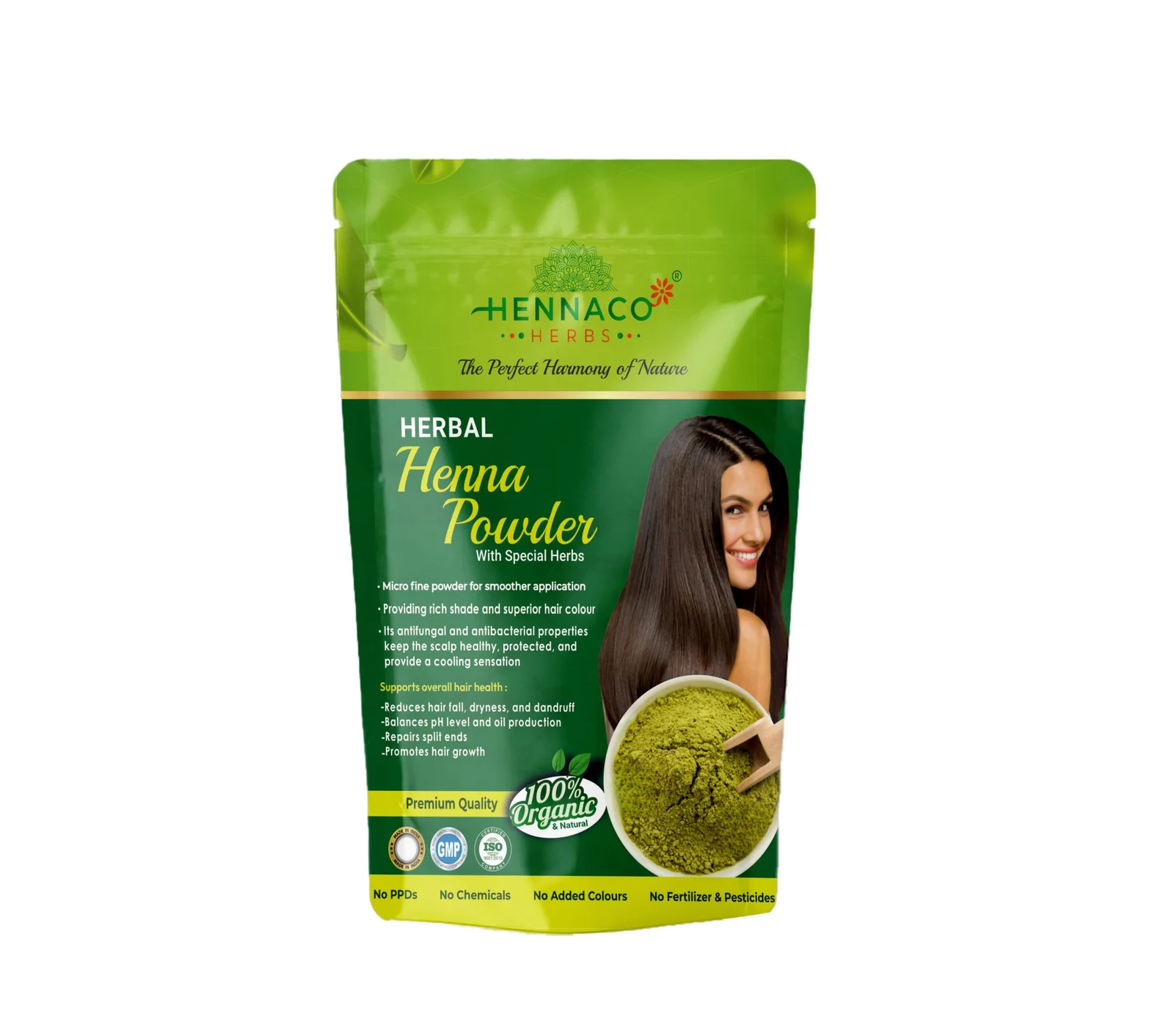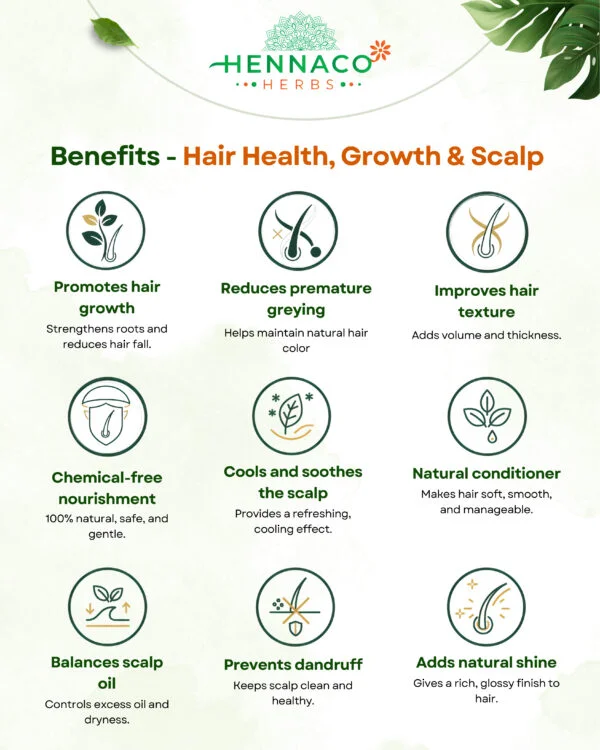 100% NATURAL AND PURE – High Grade Herbal Henna Blended with nature’s best: Amla, Shikakai, Bhringraj, Neem, Hibiscus, Brahmi, Reetha, Manjistha, Aloe Vera & Fenugreek Powder — for healthy, shiny, naturally colored hair. 💚✨