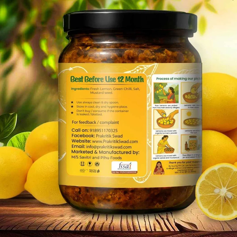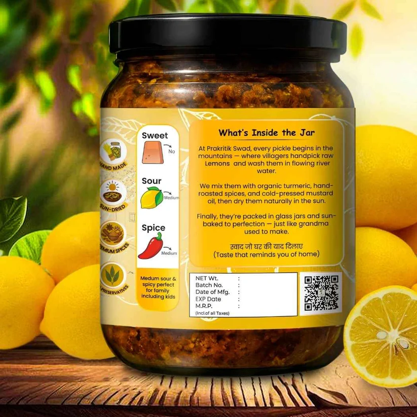 Organic Ingredients: Lemon, Jeera, Methi, Red Chilli, Saunf, Ajwain, Mustard Oil, Salt