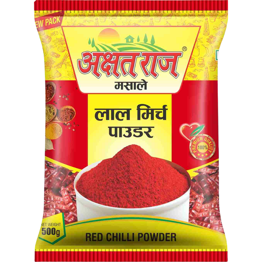 Akshat Lal Mirchi Powder is crafted from carefully handpicked red chilies to deliver authentic Indian heat and a rich natural color. Its vibrant red hue and bold aroma instantly elevate curries, sabjis, and chutneys. Finely ground using controlled processes to preserve natural oils, this spice enhances flavor while offering the benefits of natural antioxidants. From mild warmth to fiery intensity, Akshat Lal Mirchi Powder adds a powerful, lasting impression to every dish — pure, potent, and full of taste.