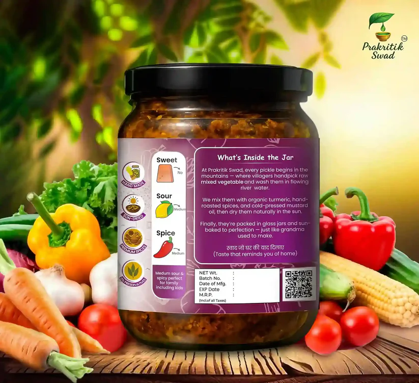 Our homemade mixed pickle is a true taste of heritage. Prepared with a colorful medley of vegetables, each piece is hand-selected and dried under the sun, then mixed with a special blend of traditional spices. This meticulous process is what makes our Panchranga Achar truly special. Our Mixed Sabzi ka Achar is a wholesome and authentic treat that brings a touch of home to your table.