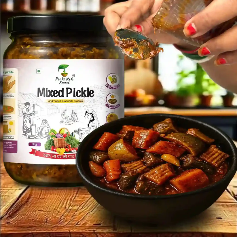 Experience a vibrant medley of flavors with our handmade mixed pickle. Known as Mix Achar or Panchranga Achar, this pickle is a celebration of seasonal vegetables and a classic blend of spices, making it a perfect accompaniment for any meal.